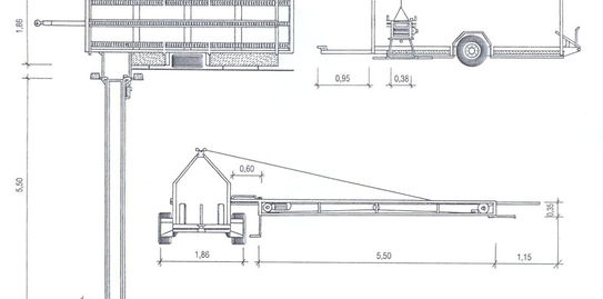 Se compone de: cinta transportadora de accionamiento eléctrico a 12V, de 6 mt de largo. Y un remolque transportador de 4 contenedores apoyado en un piso de rodillos que voltea de forma mecánica para descarga rápida. El eje del remolque es graduable en altura.