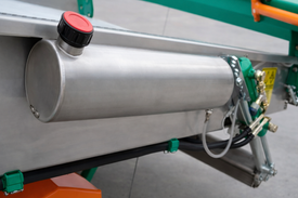 Depósito de aceite hidráulico y cárter del motor en acero inoxidable.