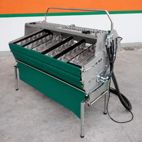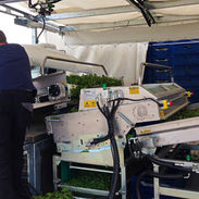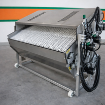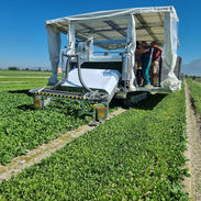 La cosechadora de hojas FOGLIA 9000 es una máquina robusta autopropulsada sobre orugas, las cuales reducen la compactación en suelos delicados y mejora la tracción en condiciones de alta humedad. Al tratarse de un modelo superior, permite la integración de varios accesorios simultáneamente, como la mesa sacudidora, que realiza el tamizaje del producto para eliminar residuos de menor diámetro; el elevador, que transfiere el producto cosechado hacia un remolque lateral o rieles para cajas. Incorpora varias opciones plataforma posterior de hasta 450cm de largo x 470cm de ancho con las tarimas laterales abiertas (con apertura hidráulica). El control automático de la altura de corte se realiza mediante sensores electrónicos con patines que se deslizan entre las plantas, evitando dañar la raíz y permitiendo el rebrote para cosechas posteriores.