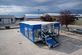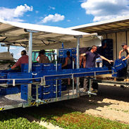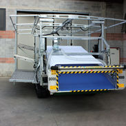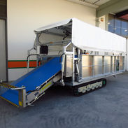 Tarimas laterales con movimiento hidráulico para apertura y cierre.