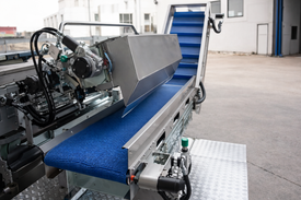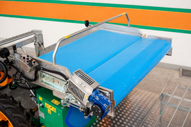 Regulación de la velocidad de la cinta transportadora desde el puesto del conductor mediante válvula de comando manual.