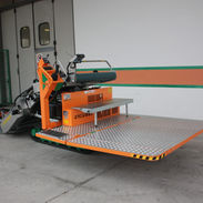 Tarima posterior de 110 cm, con capacidad máxima de carga equivalente a 400 kg, replegable a 90°.