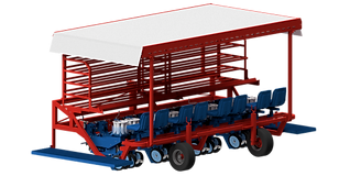 Es una máquina equipada con un carrusel giratorio adecuado para plantar vegetales en cepellones cilíndricos, cónicos y pirámidales.